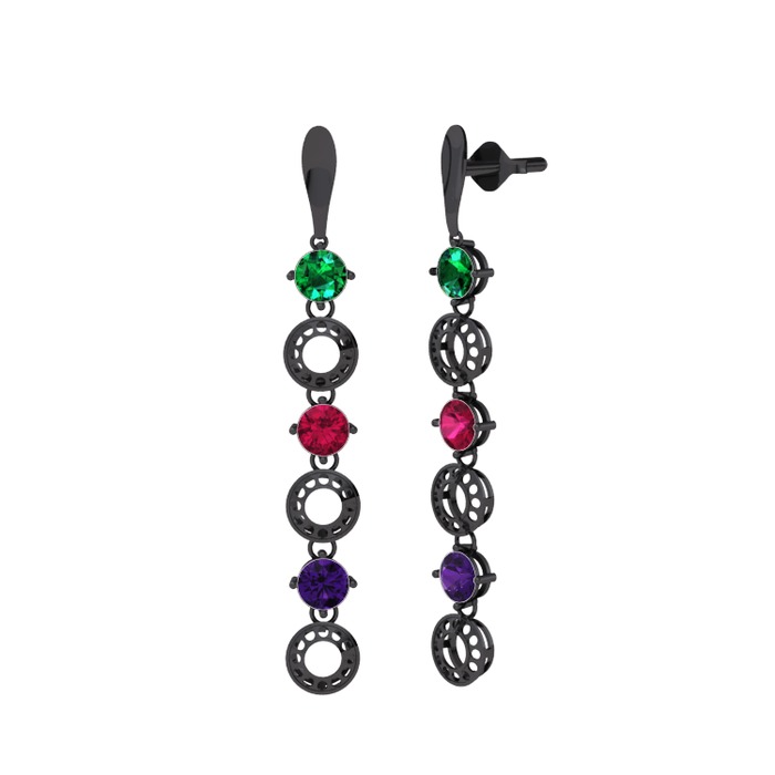 Yeşil kuvars, rodolit garnet ve ametist 925 ayar siyah rodyum kaplama gümüş küpe