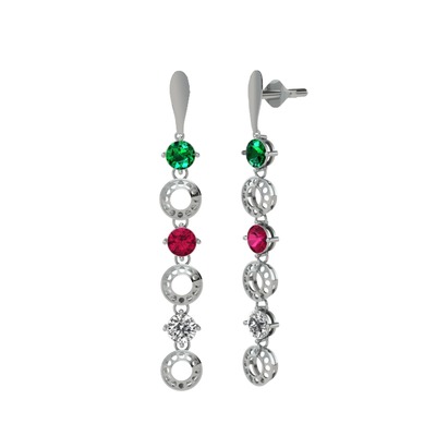 Yeşil kuvars, rodolit garnet ve beyaz zirkon 14 ayar beyaz altın küpe