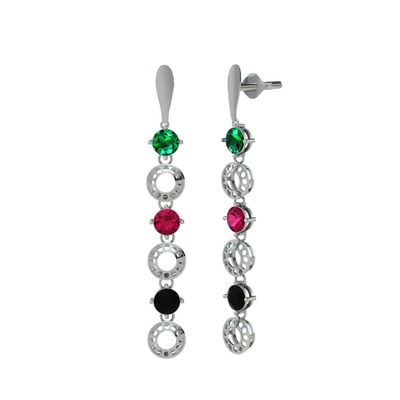 Yeşil kuvars, rodolit garnet ve siyah zirkon 8 ayar beyaz altın küpe