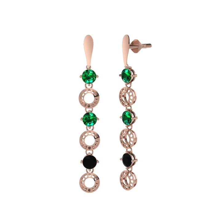 Yeşil kuvars ve siyah zirkon 925 ayar rose altın kaplama gümüş küpe