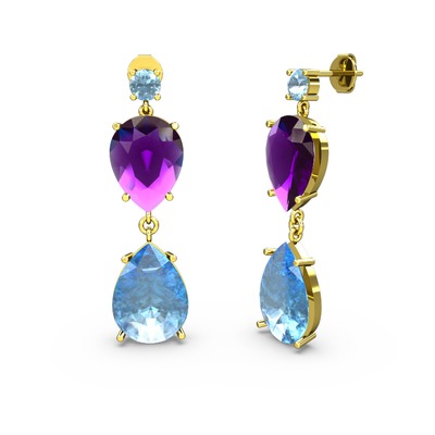 Akuamarin ve ametist 8 ayar altın küpe