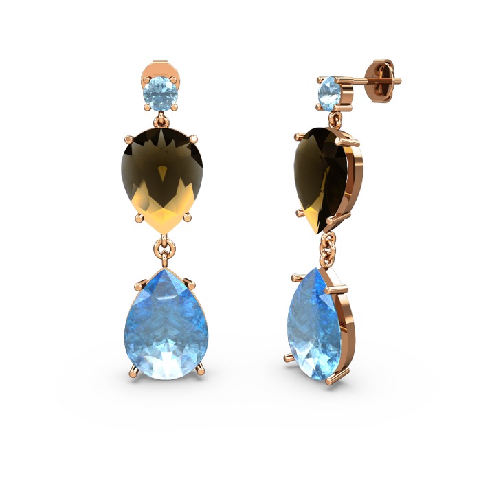 Akuamarin ve dumanlı kuvars 8 ayar rose altın küpe