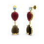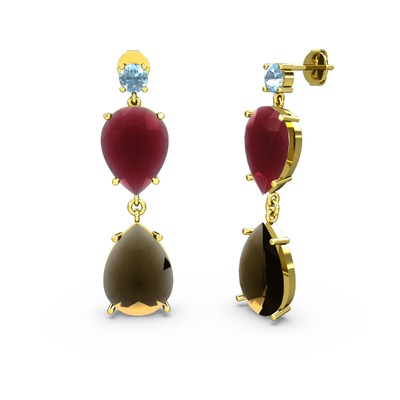 Akuamarin, dumanlı kuvars ve kök yakut 18 ayar altın küpe