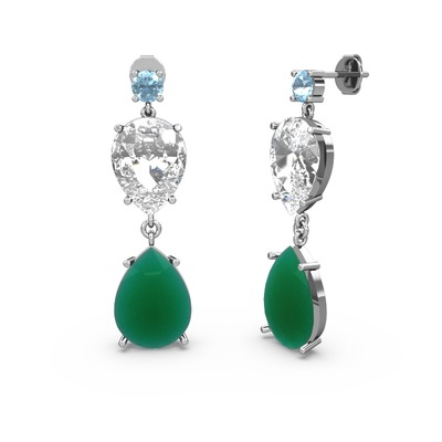 Akuamarin, kök zümrüt ve beyaz zirkon 925 ayar gümüş küpe