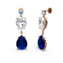 Akuamarin, lab safir ve beyaz zirkon 18 ayar rose altın küpe