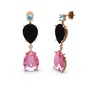 Akuamarin, pembe kuvars ve siyah zirkon 18 ayar rose altın küpe