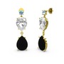 Akuamarin, siyah zirkon ve beyaz zirkon 14 ayar altın küpe