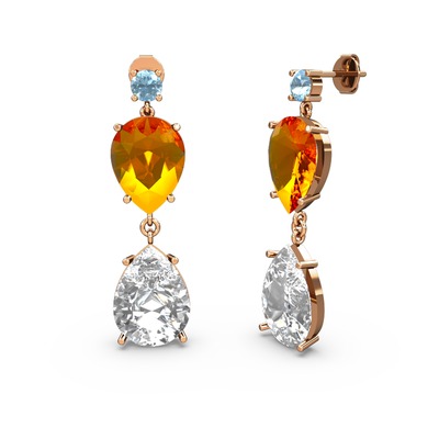 Akuamarin, swarovski ve sitrin 8 ayar rose altın küpe
