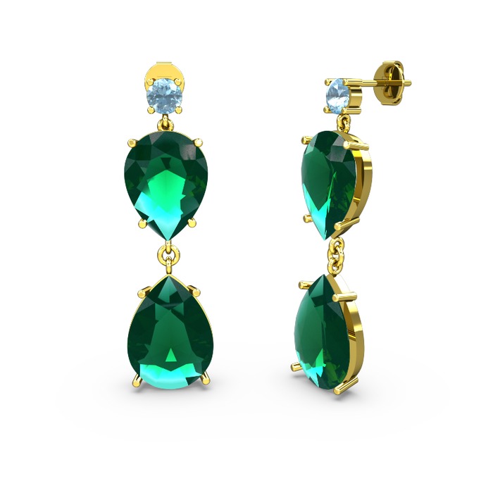 Akuamarin ve yeşil kuvars 14 ayar altın küpe