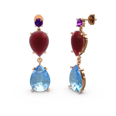 Ametist, akuamarin ve kök yakut 14 ayar rose altın küpe
