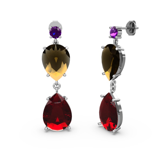 Ametist, garnet ve dumanlı kuvars 925 ayar gümüş küpe
