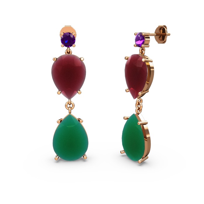 Ametist, kök zümrüt ve kök yakut 925 ayar rose altın kaplama gümüş küpe