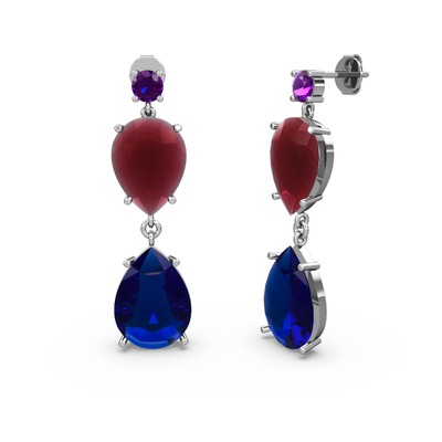 Ametist, lab safir ve kök yakut 925 ayar gümüş küpe