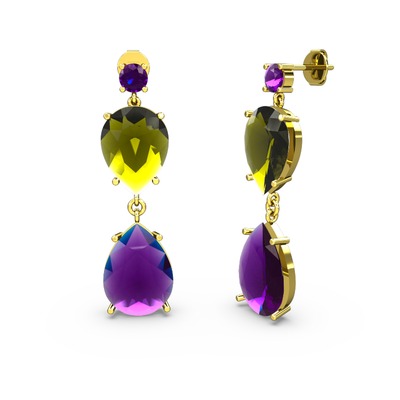 Ametist ve peridot 14 ayar altın küpe