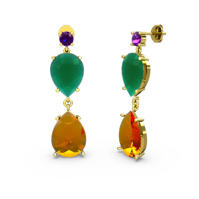 Ametist, sitrin ve kök zümrüt 925 ayar altın kaplama gümüş küpe