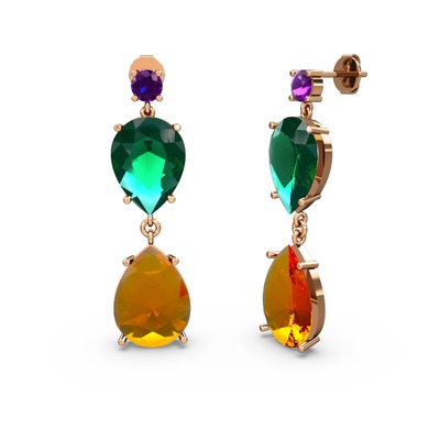 Ametist, sitrin ve yeşil kuvars 14 ayar rose altın küpe