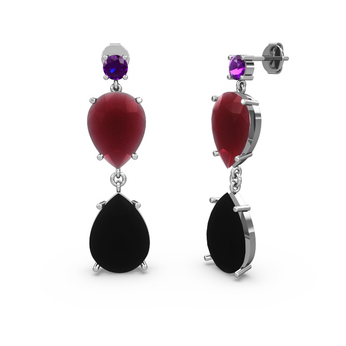 Ametist, siyah zirkon ve kök yakut 925 ayar gümüş küpe