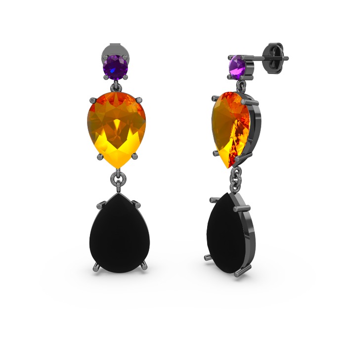 Ametist, siyah zirkon ve sitrin 925 ayar siyah rodyum kaplama gümüş küpe