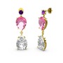 Ametist, swarovski ve pembe kuvars 18 ayar altın küpe