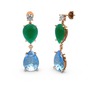 Beyaz zirkon, akuamarin ve kök zümrüt 14 ayar rose altın küpe
