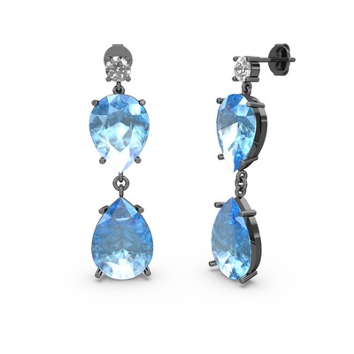 Beyaz zirkon ve akuamarin 925 ayar siyah rodyum kaplama gümüş küpe