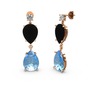 Beyaz zirkon, akuamarin ve siyah zirkon 18 ayar rose altın küpe