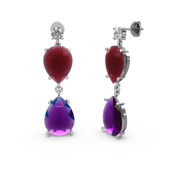 Beyaz zirkon, ametist ve kök yakut 8 ayar beyaz altın küpe