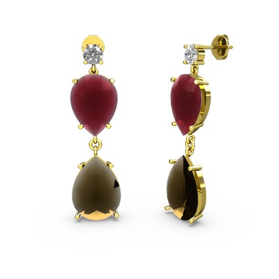 Beyaz zirkon, dumanlı kuvars ve kök yakut 925 ayar altın kaplama gümüş küpe