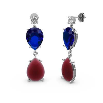 Beyaz zirkon, kök yakut ve lab safir 18 ayar beyaz altın küpe