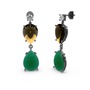 Beyaz zirkon, kök zümrüt ve dumanlı kuvars 925 ayar siyah rodyum kaplama gümüş küpe