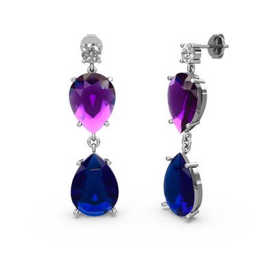 Beyaz zirkon, lab safir ve ametist 925 ayar gümüş küpe