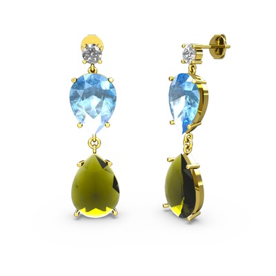 Beyaz zirkon, peridot ve akuamarin 925 ayar altın kaplama gümüş küpe