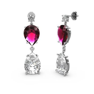 Beyaz zirkon ve rodolit garnet 925 ayar gümüş küpe