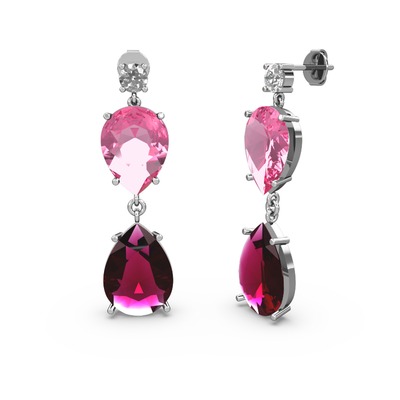 Beyaz zirkon, rodolit garnet ve pembe kuvars 925 ayar gümüş küpe