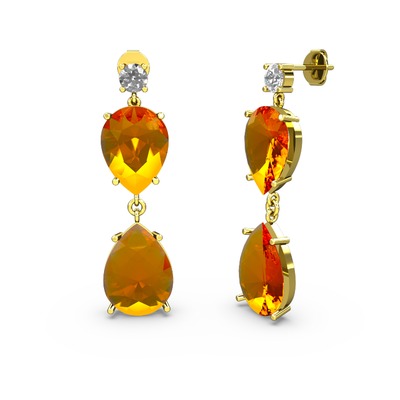 Beyaz zirkon ve sitrin 925 ayar altın kaplama gümüş küpe