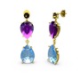 Dumanlı kuvars, akuamarin ve ametist 18 ayar altın küpe