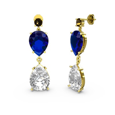 Dumanlı kuvars, beyaz zirkon ve lab safir 8 ayar altın küpe