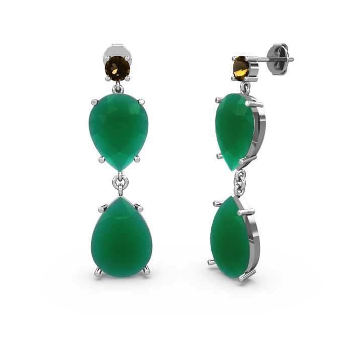 Dumanlı kuvars ve kök zümrüt 14 ayar beyaz altın küpe