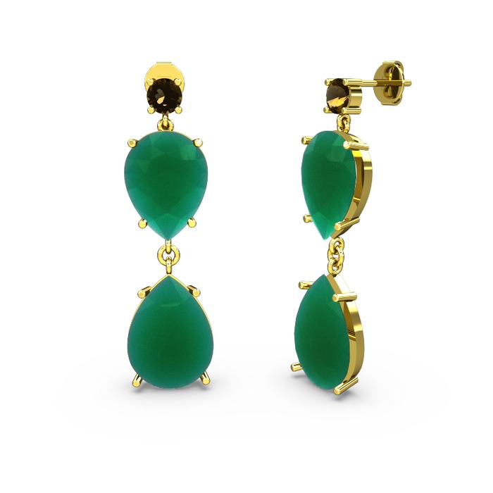 Dumanlı kuvars ve kök zümrüt 8 ayar altın küpe