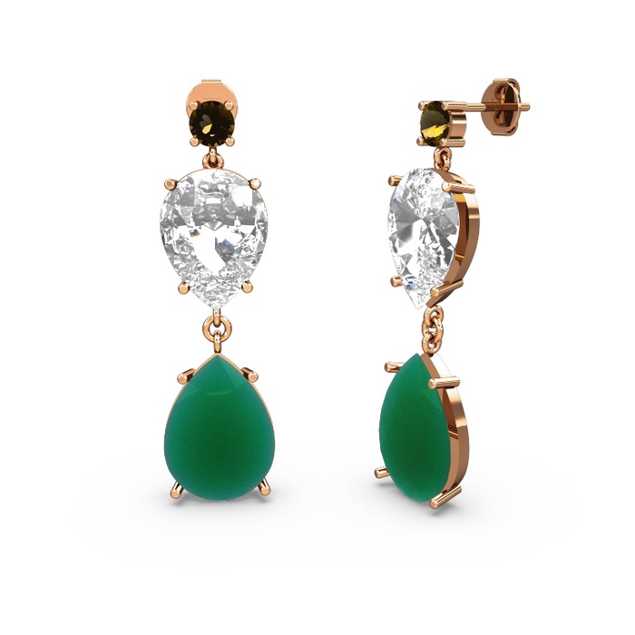 Dumanlı kuvars, kök zümrüt ve swarovski 18 ayar rose altın küpe