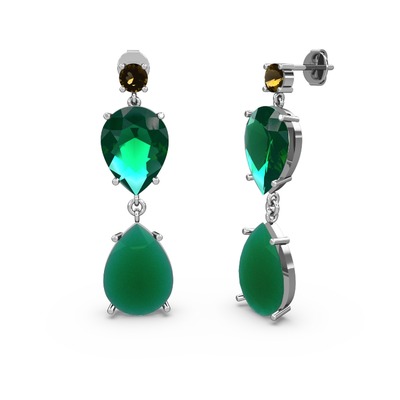 Dumanlı kuvars, kök zümrüt ve yeşil kuvars 18 ayar beyaz altın küpe