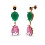 Dumanlı kuvars, pembe kuvars ve kök zümrüt 14 ayar rose altın küpe