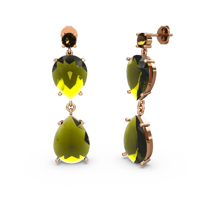 Dumanlı kuvars ve peridot 18 ayar rose altın küpe