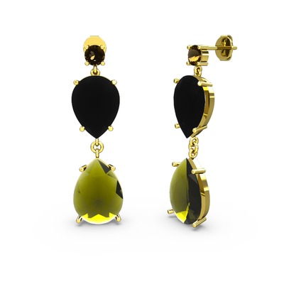 Dumanlı kuvars, peridot ve siyah zirkon 14 ayar altın küpe