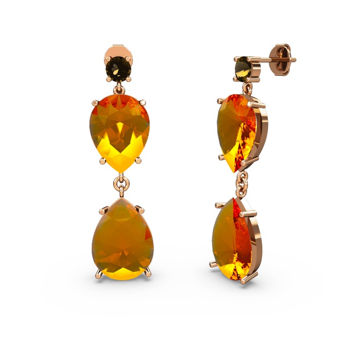 Dumanlı kuvars ve sitrin 8 ayar rose altın küpe