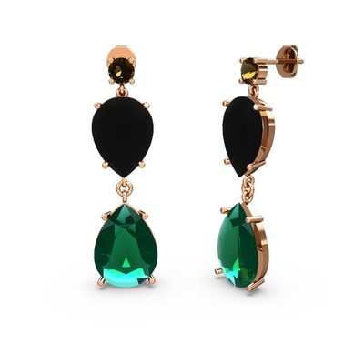 Dumanlı kuvars, yeşil kuvars ve siyah zirkon 18 ayar rose altın küpe