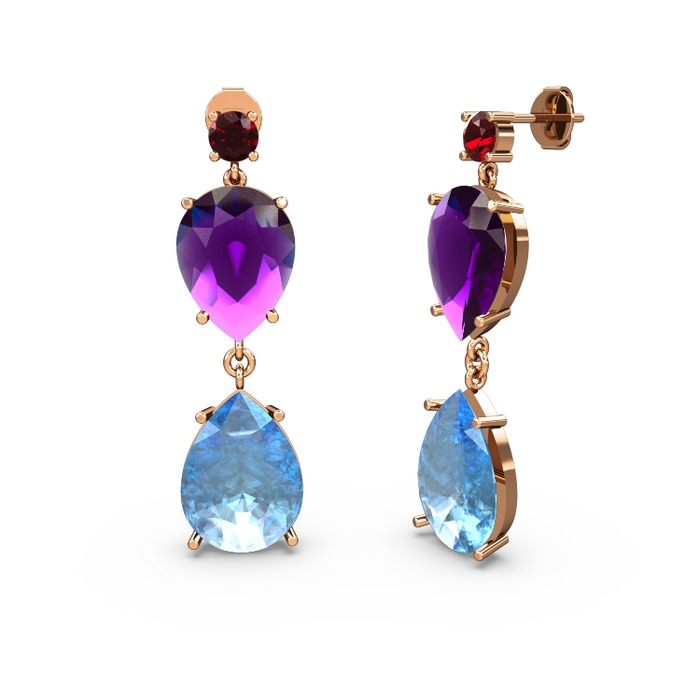 Garnet, akuamarin ve ametist 14 ayar rose altın küpe