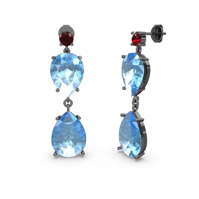 Garnet ve akuamarin 925 ayar siyah rodyum kaplama gümüş küpe