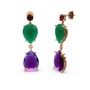Garnet, ametist ve kök zümrüt 8 ayar rose altın küpe
