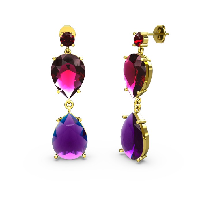 Garnet, ametist ve rodolit garnet 14 ayar altın küpe